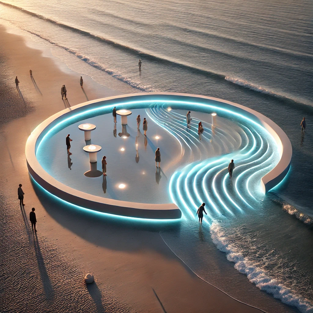 • 모듈형 설계: 조수 간만과 파도에 따라 물 위에 뜨거나 모래 위에 안정적으로 위치할 수 있는 구조물 제작.