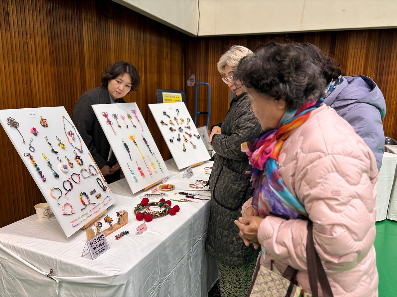 수줍게 손을 얼굴로 가리며 입을 연 이은수 매듭 강사는 “연습 과정이 힘들었지만 전시를 마친 지금, 지금 이 자리에 전시된 이 작품을 만들었다는 것이 믿기지 않는다”라고 말했다. 이러한 경험은 참여자들의 자부심과 공동체 의식을 심어주는 과정이었다. 매듭이 가진 상징적 의미인 “연결과 조화”는 단순히 작품 안에서만이 아니라, 참여자들 사이에서 생생하게 구현되었다.