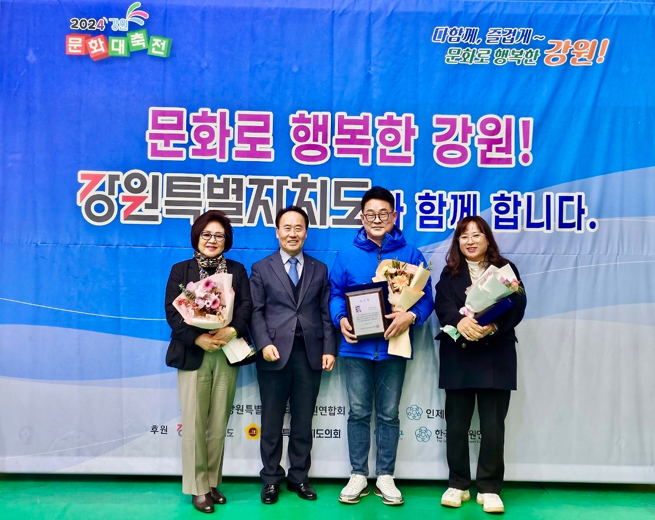 이번 축전에서는 문화원의 주요 구성원들이 다수의 수상을 하며 그간 노고와 헌신이 빛을 발했다. 조연섭 사무국장과 김해정 문화경영부장이 20년 근속 공로패를, 신혜영 이사가 도지사 표창을, 권지연 가야금 강사가 도의회 의장상을 수상했다. 특히 도에서 참석한 모 고위공무원도 오찬자리에서 “오늘 1부 시상 무대는 마치 동해문화원의 날 같았다. 원장님께서 점심 식사 사셔야겠어요” 라며 축하했다는 후문도 있었다.