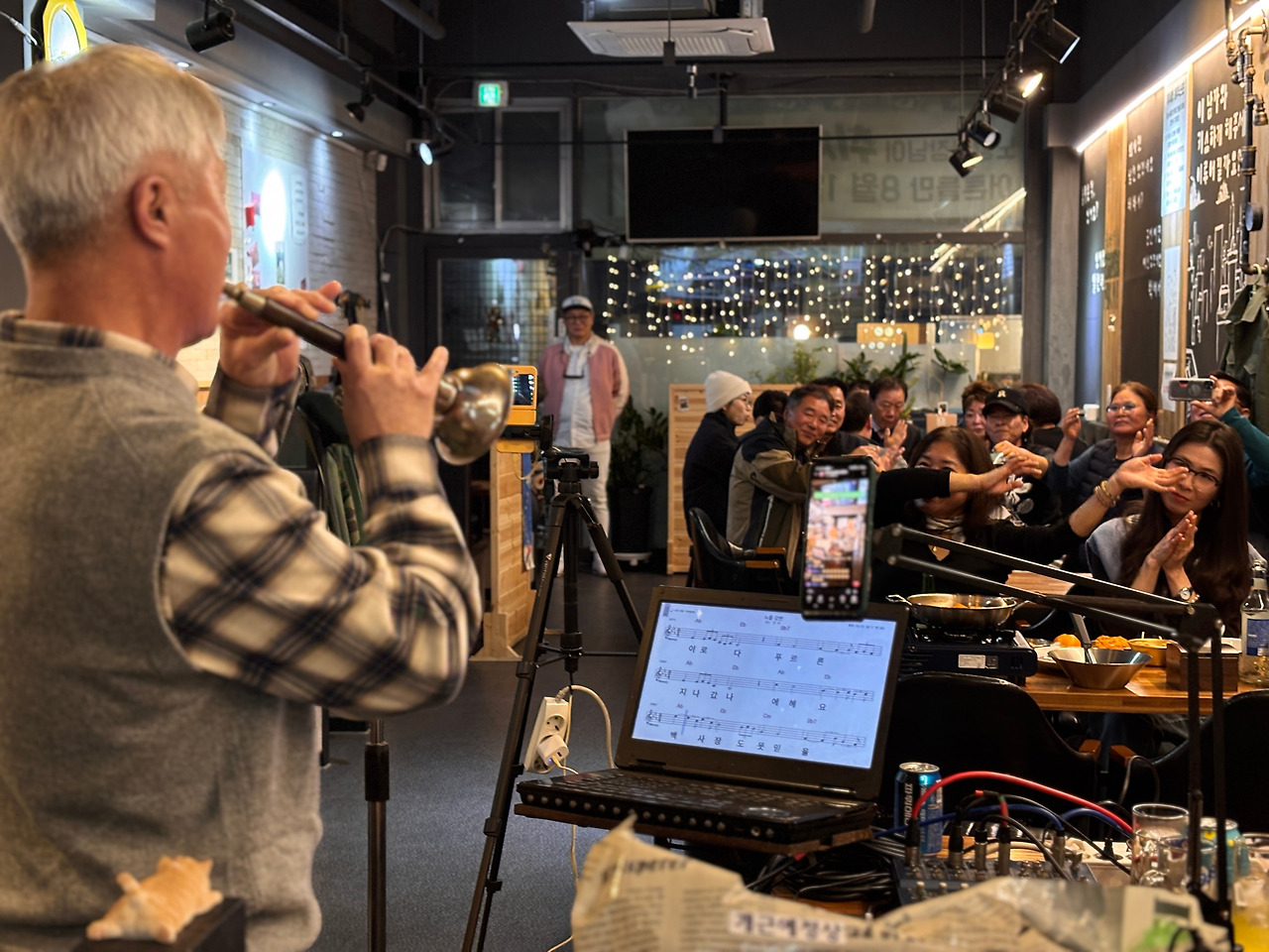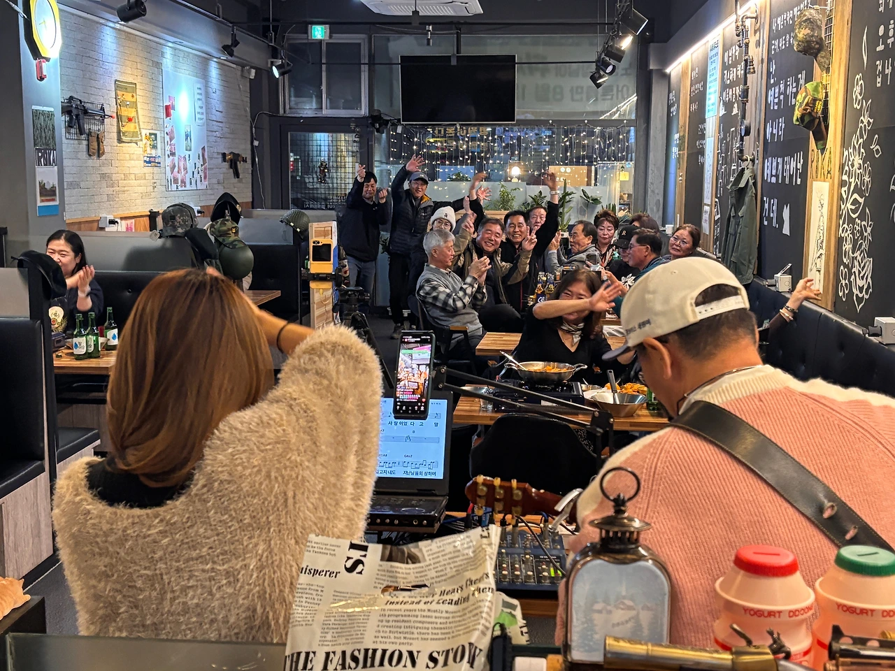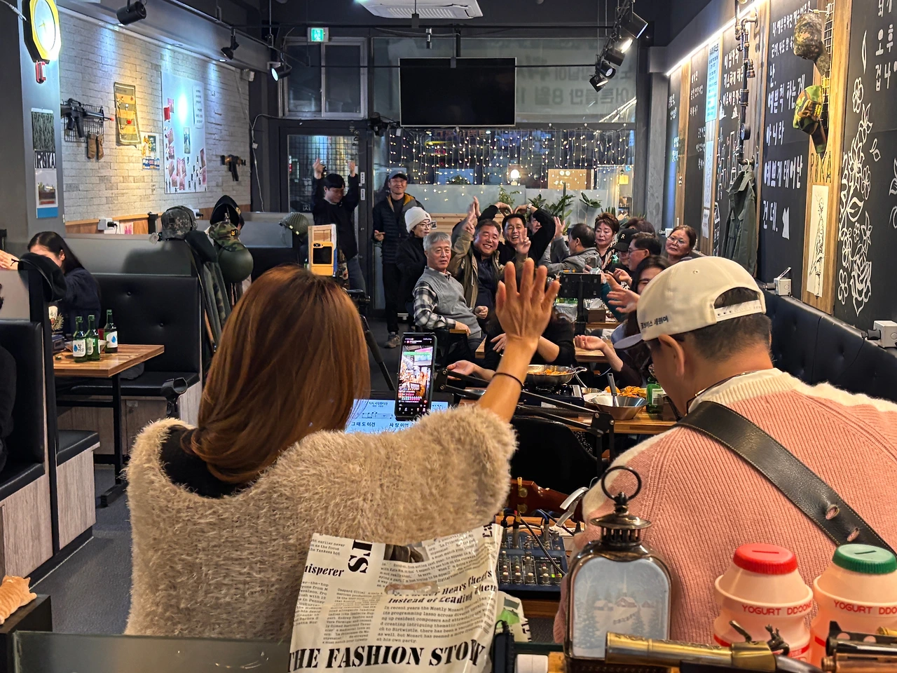 이날 11월 추억의 위문열차의 중심은 국내 최고의 버스커로 불리는 혼성듀엣 ‘꿈꾸는 사람들’이었다. 그들의 감미로운 목소리와 통기타 선율은 7080의 향수를 자극했고, 손님들은 자연스럽게 노래를 따라 부르며 추억 속으로 빠져들었다. 이도경 씨가 열창해 준 우판집 대표의 신청곡 ‘꽃밭에서’ 같은 신청곡부터 강세원 씨가 부른 크리스마스 캐럴에 이르기까지, 공연은 서정성과 흥겨움을 넘나들며 절정을 이루었다.