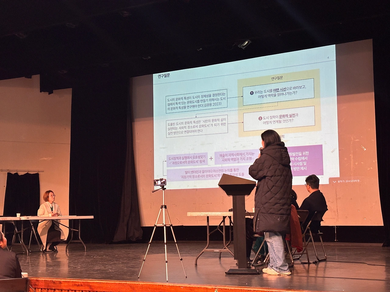 1부 학술대회는 좌장과 토론을 겸해 대회를 이끌어 주신 강윤주 교수의 모두 발언과 이원재, 김은양 교수의 지명토론으로 진행됐다. 전공자들의 다양한 주제로 발표한 이날 인상적이었던 발표 중 하나는 김선애 원우의 연구였다. 원주에서 올라온 그는 석사 졸업 논문으로 “저장기억장소로 돌아본 문화도시”라는 주제를 발표하면서 “한강의 소설 역시 기억을 정리한 기록의 역사가 일궈낸 노벨문학상 사례가 아닌가?”라고 주장하하면서 저장과 기억의 중요성을 강조했다. 한강의 소설과 아카이브를 연결해 기록의 중요성을 논의하며 발표를 마무리했는데, 이는 단순히 학술적 논의에 그치지 않고 예술과 사회적 책임을 함께 고민하게 했다.
