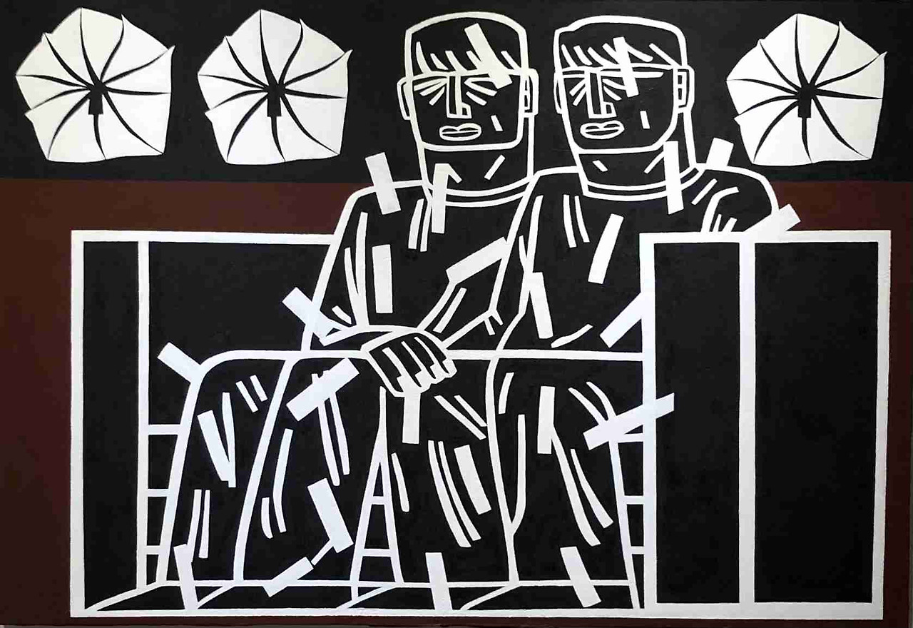구뢰의 작품 전반에는 직사각형의 하얀색 짧은 선들이 테이프처럼 그려져 있다. 구뢰는 이 선들이 퀴어들을 향한 사회적 차별과 박해의 흉터이기도 하면서 한편으로는 그 상처를 가리는 반창고와 같다고 언급했다. 그림자는 흉터가 남지 않는다. 그렇기에 누군가 그림자에 해코지를 하더라도 그 흉은 남지 않는다. 하지만 구뢰의 작품 속 그림자들은 그 흉이 남는다. 그들은 기쁨과 아픔을 느끼는 생명체이기 때문이다. 상처 투성이인 그들은 퀴어를 향한 차별과 박해의 상처들을 몸에 남긴 채 서로의 피부를 맞대며 끌어안고 있다. 그들은 서로를 끌어안으며 상처를 공유하고 서로의 생채기를 어루만지며 상처를 치유한다.