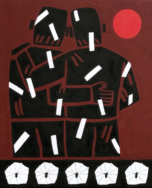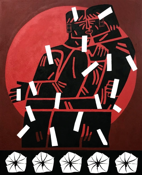 꽃과 인물을 함께 배치한 구성은 작품 속의 인물들이 다른 사람의 시선을 두려워하지 않고, 자신의 내면에 품고 있는 사랑을 이루었으면 하는 의도를 내포한다. 구뢰는 성별에 구애받지 않고 사람과 사람 간에 느끼는 자유로운 사랑의 스펙트럼을 이야기한다. 그는 부둥켜안은 이들의 성별이 여성인지 남성인지 분간이 어렵다는 점에서 자신의 의도를 잘 투영하고 있으며 다양한 색을 활용하지 않고도 퀴어가 처한 현실과 사랑을 상징적으로 표상한다.