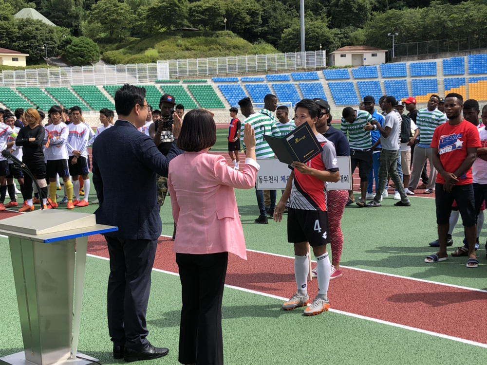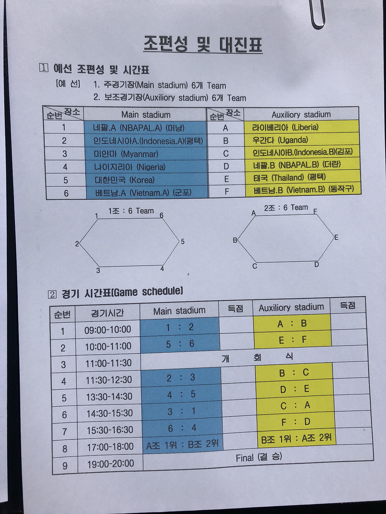 '2018자카르타 아시안' 게임 폐막 날인 9월 2일 동두천시 공설운동장에서 열린 <제4회 동두천시 체육회장배 다문화 체육대회>의 유일한 자원활동가인 내가 맡은 일은 인포메이션에 가까웠다. 참고 이 대회에는 9개 국가 축구동호회가 참여했다. 참가국을 소개하자면.