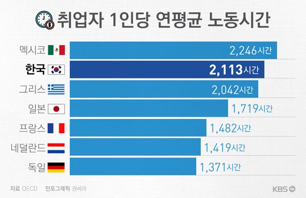 생활체육의 발전 역시 생활체육의 문제점 해결이 필수적으로 선행되어야 한다. 생활체육의 가장 큰 문제점은 낮은 참여율이다. 「2015년 국민생활체육 참여실태조사」체육백서에 따르면 주 2회 이상 체육활동을 하는 비율은 45.3%이고, 체육활동을 참여하지 못하는 가장 큰 이유는 시간부족(44.9%)이다. 2015년 기준 OECD 가입국 중 한국은 멕시코 다음으로 노동시간이 많은 나라다. 나아가 국내 취업자의 1인당 연간 평균 노동시간은 2,113시간으로 OECD 회원국 평균보다 347시간이나 많다.