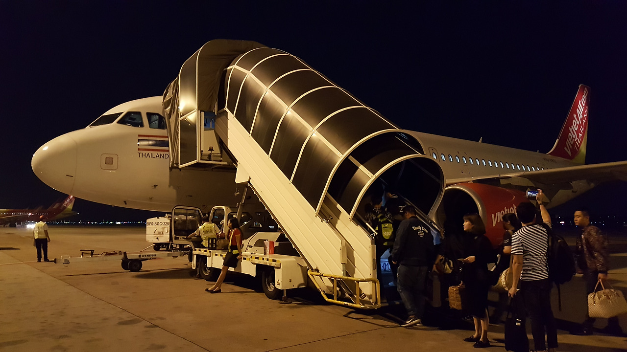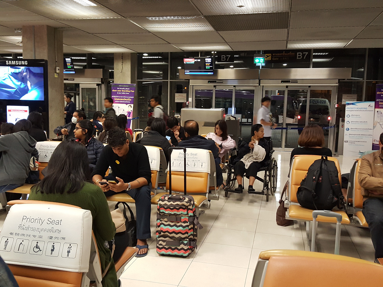 홍콩이나 유럽 공항에서도 그랬지만, 저가 항공의 탑승 게이트는 대체로 공항에서 가장 멀거나 외진 곳에 있는 경우가 많다. 수완나품 공항 역시 마찬가지. 그 큰 공항을 가로질러 한참을 걷고 또 걸어서 도착한 탑승 게이트는 어느 소도시의 버스 터미널 대합실 같은 분위기였다. (하긴 창고 같았던 비엔티엔 국내선 대기실보단 훨씬 나았다) 한참을 기다려 탑승 수속을 하고 공항 셔틀버스를 탔는데, 우와~ 버스가 끝없이 공항 안을 돌고 돌면서 달렸다. 공항 활주로 투어 하는 줄?! 공항이 얼마나 큰 건지, 아니면 비행기가 얼마나 외진 곳에 있었던 건지 몰라도 셔틀버스는 최소 5분, 체감 10분 정도를 달린 이후에야 비행기 앞에 도착했다. 공항 셔틀버스를 이렇게 지겹도록 오래 타보기는 또 처음이었다.