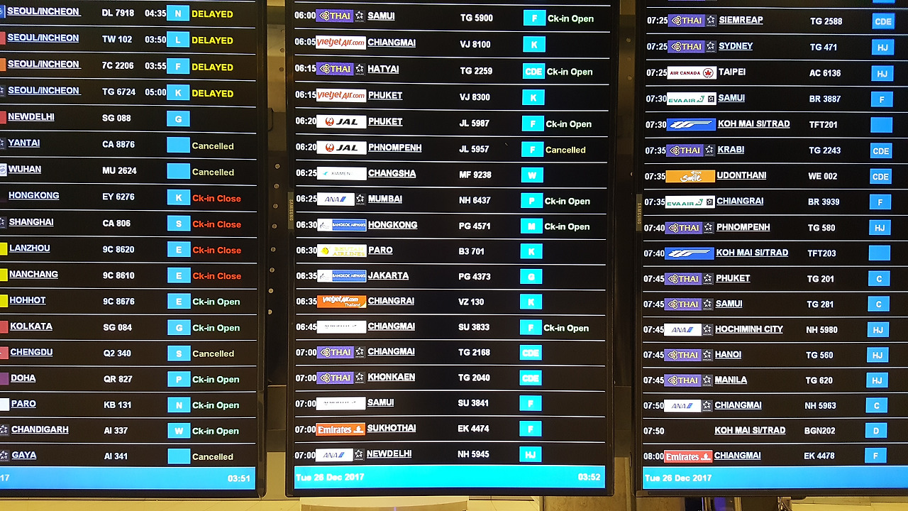 태국에 도착해 수속을 밟고 짐을 찾고 출국장으로 나오니 새벽 1시. 피곤한 몸으로 묵직한 캐리어를 끌고 카시콘은행 ATM 찾아 수완나품 공항 삼만 리를 하고, AIS 유심을 사서 끼운 뒤 편의점에서 산 컵라면을 먹고 나니 새벽 3시. 다시 AIS 부스에 가서 왜 LTE가 아니냐고 따지고 고치고 한 뒤 캐리어를 질질 끌고 국내선 출국장을 찾아가니 새벽 4시다. 새벽 공항에서 방황하며 돌아다니다 보니 쪽잠 한숨 못 자고 치앙라이행 티켓 발권 시간이 다가왔다.