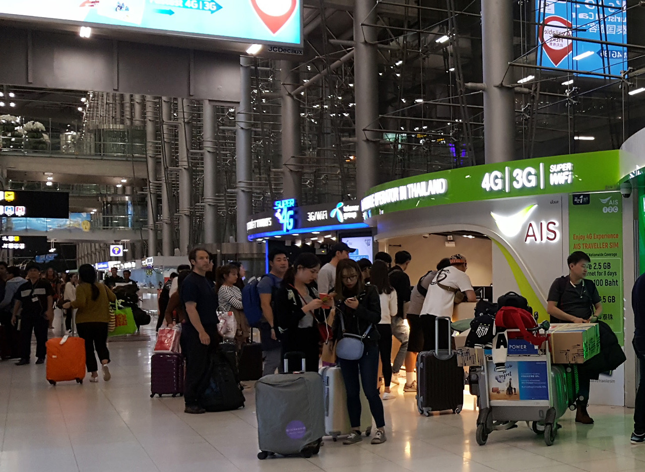자, 그럼 이제 돈도 찾았으니 유심을 사야지! 좌절모드도 잠시 다시 눈을 굴려 통신사의 유심 가격을 스캔했다. 미리 추천 통신사를 알아본 것도 아니었고 패키지 금액대도 비슷비슷해서 혼자 어슬렁대며 고민하다가, 한국 유심에 자동 연결된 태국 통신사인 AIS를 선택했다(SKT는 AIS로 자동 연결됐다). 태국 내 NO.1 통신사라는 문구를 큼지막하게 걸어놨는데, 특별히 좋은지는 모르겠지만 사용하는 동안 별다른 불편함은 없었다. (여행 막바지에 농카이에서 탑업 할 때 버려지는 잔액이 아까웠던 것은 빼고..;)