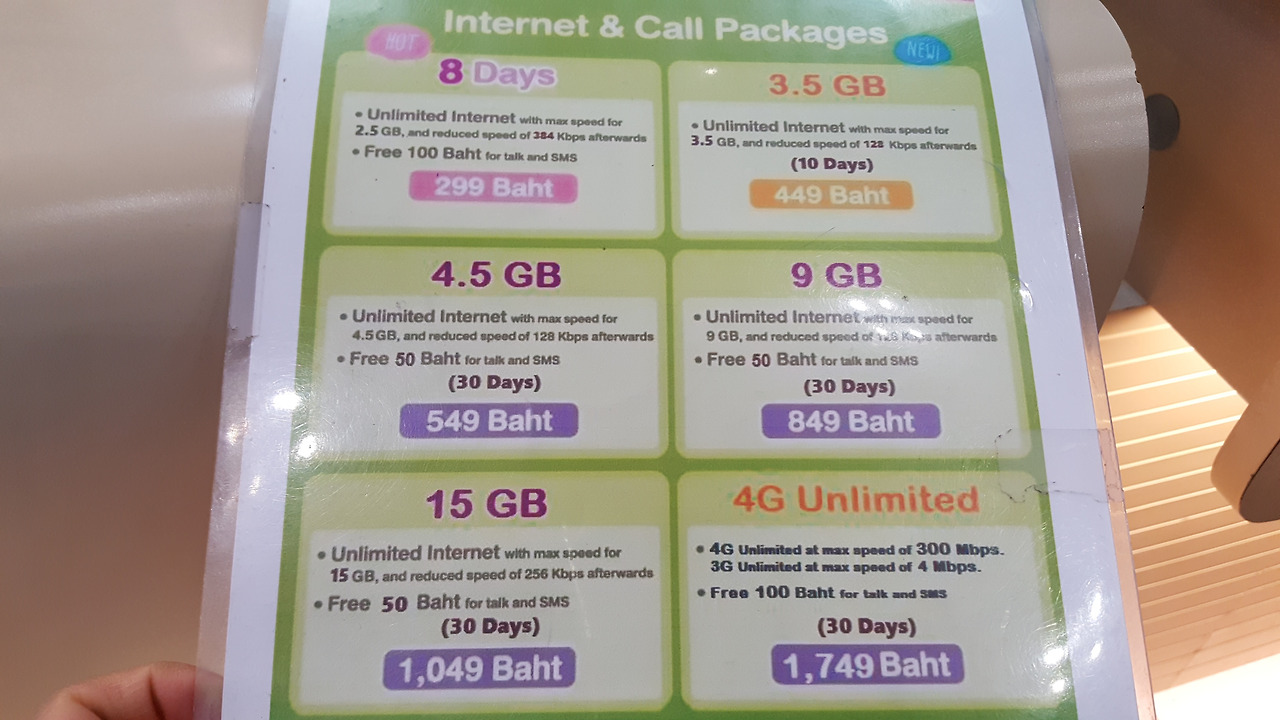 태국에서는 일단 3주를 머물 예정이었기에 '데이터 4.5G, 통화 및 문자 50밧에 549Baht인 30일 패키지'를 선택했다. 30일 패키지 중에도 가장 싼 거였지만, 그럼에도 비쌌다. 21일 쓸건대 30일 패키지라니 나머지 기간이 아까웠지만, 8일, 10일, 30일 패키지 밖에 없어서 선택의 여지도 없었다. 역시 공항 유심은 비싸, 하지만 어쩔 수 없잖아, 하는 마음으로 거금 549밧을 내고 유심을 구입했다.
