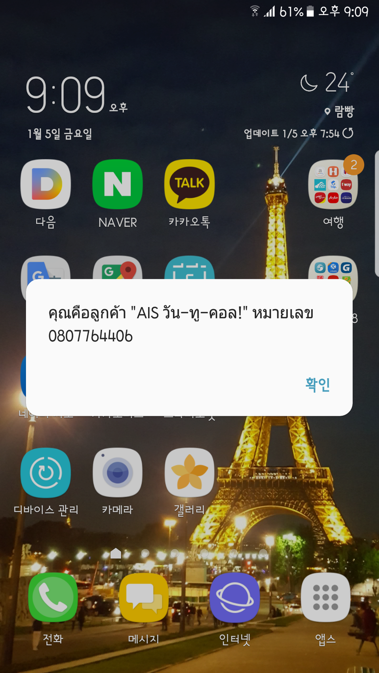 AIS 유심을 사면 같이 주는 안내장에 바코드 스티커가 붙어 있는데, 그 윗부분의 숫자가 전화번호다.