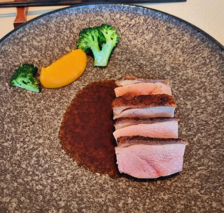 오리 스테이크와 당근 퓌레DUCK(오리) + 당근 퓌레 브로콜리 비가라드