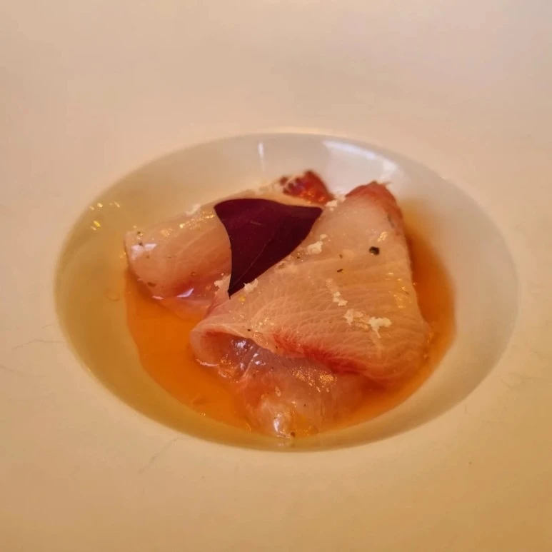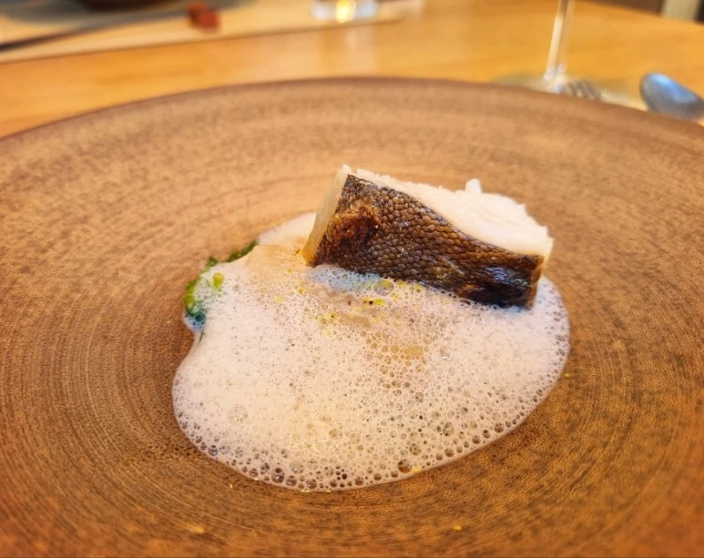 달고기를 누룽지로 추정되는 것과 찹쌀을 함께 해서 튀긴 요리입니다. 이날 먹은 베스트 3 중 하나로 파인 다이닝만 아니었다면 이 요리만 5개는 달라고 했을 것 같아요. 쫀득쫀득한 튀김옷 안에 고소한 생선이 자리 잡고 있으니 고소하고 맛있더라구요. 크림소스도 훌륭했구요. 마음껏 먹고 싶은데 마음껏 먹을 수 없는 음식이라 슬펐습니다.