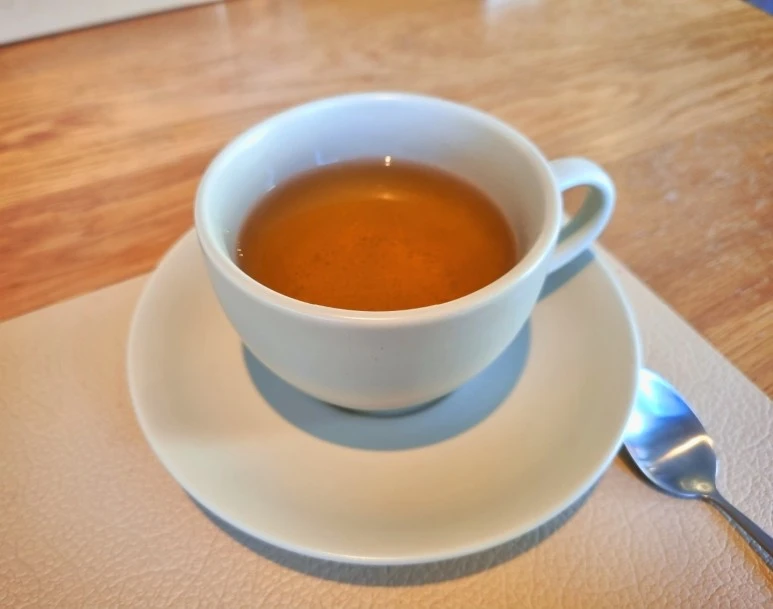마지막은 부드러운 치즈 케이크와 차로 마무리했습니다. 전반적으로 부드러운 맛이 좋아서 지금까지의 코스에 어울리는 마무리라는 생각이 들었어요. 기념일 레터링 서비스가 없다는 게 조금 아쉬웠지만, 충분히 만족스러운 식사였습니다.