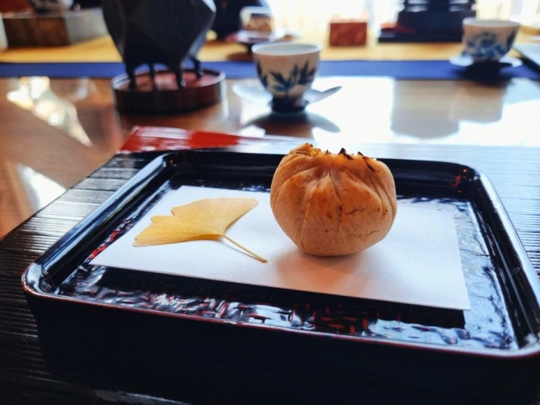차와 함께 먹은 첫 번째 다식은 하동 햇밤으로 만든 <쿠리킨톤(일본식 밤율란)>입니다. 금란다원의 시그니처 디저트라 할 수 있는데요, 너무 달지도 않으면서 부드러운 식감이 차와 환상적인 궁합을 만들어내는 다식입니다. 인기가 너무 많은 덕분에 대표님은 매일 쿠리킨톤을 만드시느라 밤마다 다람쥐가 되신다고 해요.