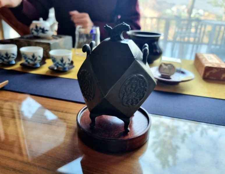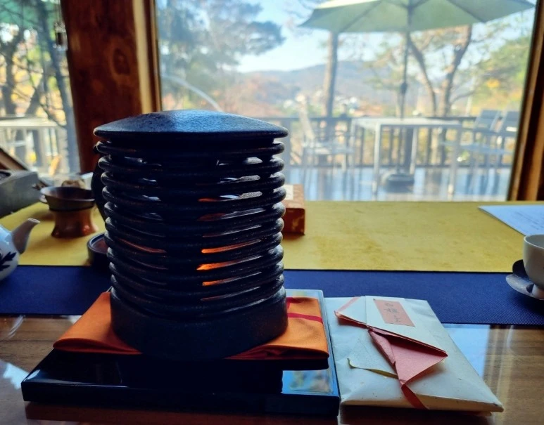 두 번째 차를 다 마실 때쯤 함께 나온 향은 전에 내어주신 가라대관 침향보다 더 좋은 향을 내어주셨어요. 은은하면서도 차분한 가라도산 특유의 향이 차의 맛에 더 집중하게 만들어주더라구요. 향을 피우는 향로 역시 육각형의 독특한 모양이라 집에 공간만 있었어도 두고 싶은 귀여운 향로였습니다.