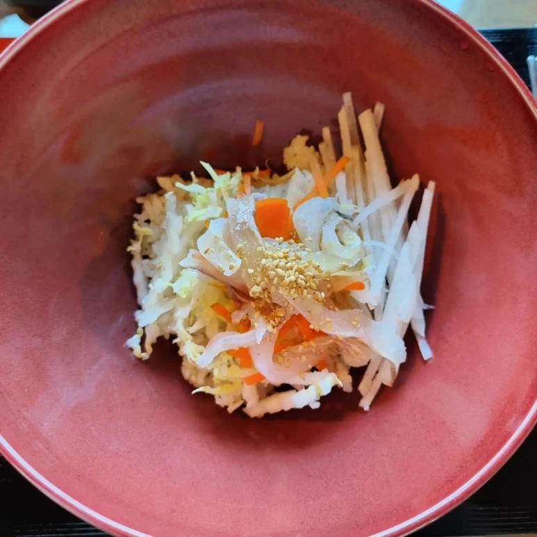세 번째 차를 마실 때쯤 나온 식사 <회덮밥>입니다. 대표님께서도 회덮밥이 나올 줄은 몰랐다며 놀라시더라구요. 잘 지은 밥에 얇게 썬 야채, 그리고 회와 직접 만든 초고추장의 조합이 너무 좋아서 끝없이 먹을 수 있을 것 같은 맛이었어요. 그렇지 않아도 아침 일찍 나오는 바람에 배가 텅 비어 있었는데 정성스러운 식사를 내어주셔서 감사했습니다.
