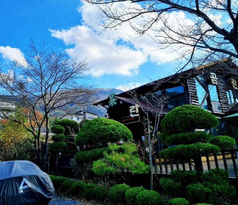 금란다원 외관 <금란 다원>은 차가 없으면 방문하기 어려운 장소에 위치해 있어요. 안타깝게도 구비구비한 산길을 건너 올라가야 하기 때문인데요, 그래도 그렇게 어렵게 가다 보면 커다란 외관의 <금란다원>을 금방 발견할 수 있어서 보물 장소를 찾은 듯한 기분이 들게 됩니다. 상당히 큰 가게이기 때문에 주차 자리나 테이블 자리는 걱정하지 않고 오셔도 괜찮아요.