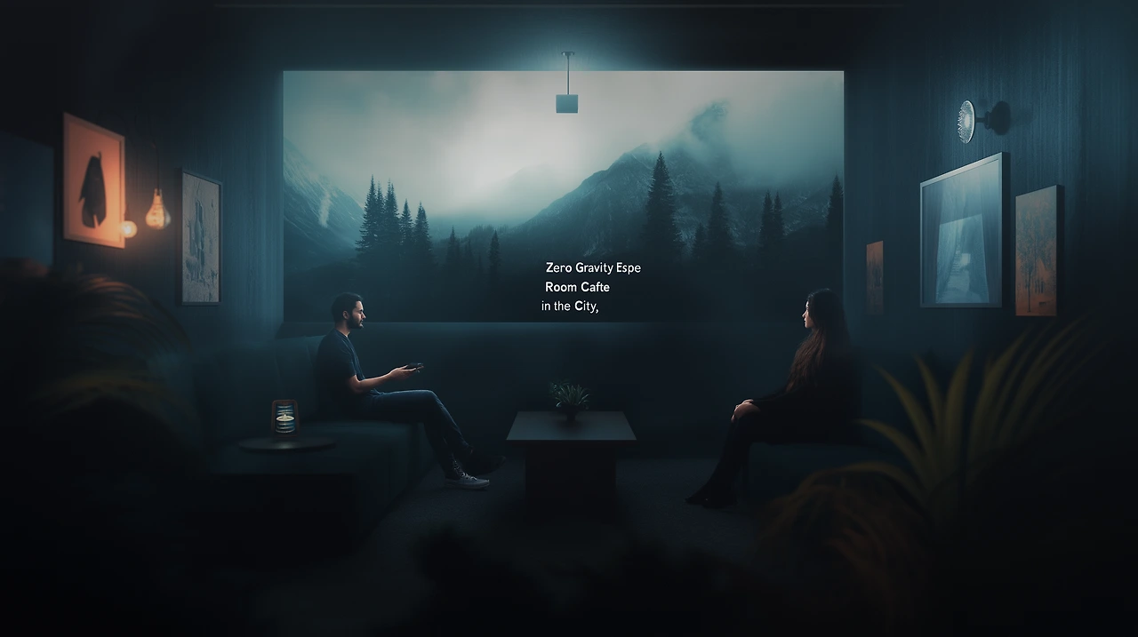 단편 소설집 <소통이 불가능한 세계> 의 첫 번째 이야기는 「도심 속 무중력 방탈출 카페」입니다. 서울 강남의 빌딩 숲 사이에 갑자기 등장한 신비로운 방탈출 카페에 이제 막 소개팅을 한 두 사람이 들어갑니다. 그들이 방에 들어서자 갑자기 중력이 사라지고, 몸은 공중에 떠오르지만 마음은 더욱 무거워집니다.