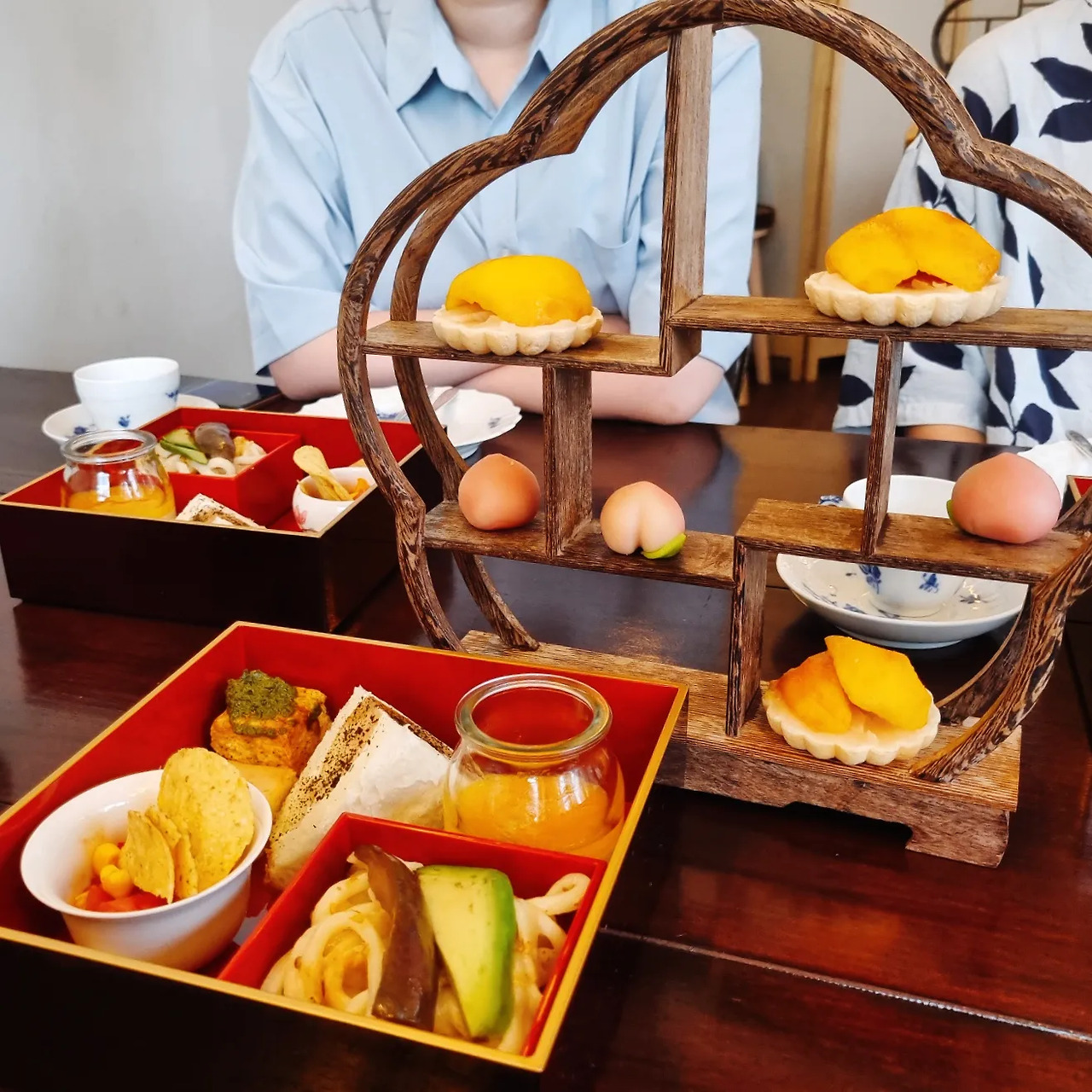 친구들과 여름 여행지를 고민하던 중 대전에 유명한 찻집이 있다는 말을 듣고 바로 알아보게 되었는데요, 바로 <차의 계절>이었습니다. 찾아보니 시그니처 <오리엔탈 애프터눈 티세트>를 단정한 찬합과 진열장에 놓아주시더라구요. 그 모습에 반해 "여긴 가야 해!"를 외치며 바로 예약을 진행했습니다. 운 좋게도 저희가 예약한 날은 올해 7월까지만 진행하는 <오리엔탈 애프터눈 티세트 - 여름 시즌(복숭아)>를 먹을 수 있는 날이었어요. 복숭아를 좋아하는 저희 일행에겐 완벽한 픽이었습니다.