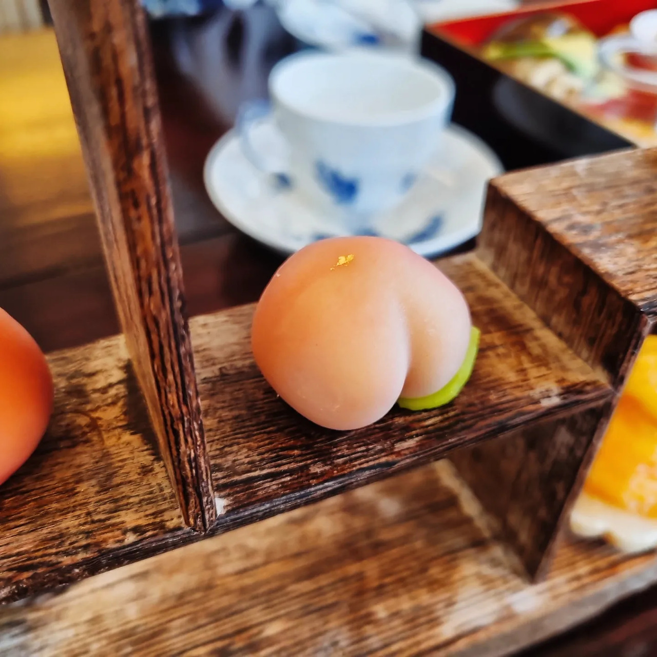 진열장에는 복숭아 모나카와 귀여운 복숭아 화과자(유자 맛)이 있었어요. 특히 복숭아 모나카가 정말 이곳에서만 먹을 수 있는 음식일 뿐만 아니라 맛도 참 좋았는데, 일행들도 연신 감탄하면서 먹더라구요. 전 바질 페스토 스콘을 원픽으로 골랐지만 일행들은 복숭아 모나카를 원픽으로 뽑았습니다.