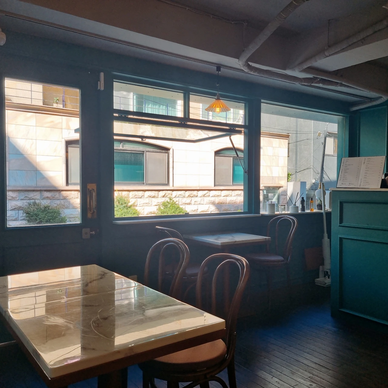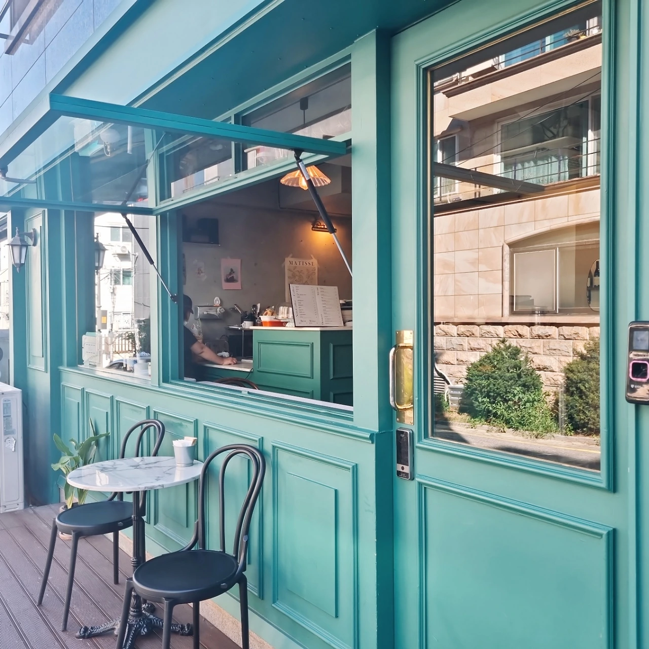분명 외근 지역에서 가까워 보였는데, 막상 출발하니 언덕 위에 있어서 한참을 헥헥거리면서 갔어요. 네이버 지도에는 Z축이 안 보인다는 사실을 깜박한 결과였네요. 그래도 막상 도착해 보니 청록색의 이쁜 가게가 있어서 어떤 가게인지는 헤매지 않아도 괜찮았어요.