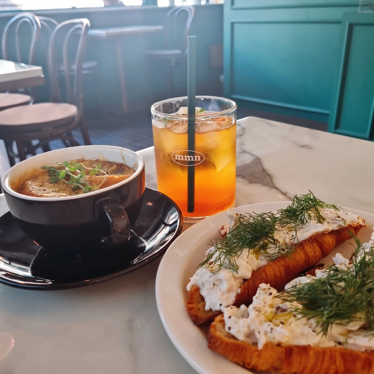 <MMN>의 시그니처 메뉴 <그릭 치킨>은 따뜻하게 데워진 크루아상 위에 그릭 요거트에 버무린 닭 가슴살이 올라와 있고, 그 위에 향긋한 "달"이라는 허브가 뿌려진 메뉴였어요. 간단한 메뉴지만, 막상 먹으면 허브향과 닭 가슴살 그리고 크루아상이 함께 버무려지면서 특별한 맛을 만들더라구요. 입가에 향이 계속 맴돌아서 그런지 인상에 강하게 남는 메뉴였습니다.