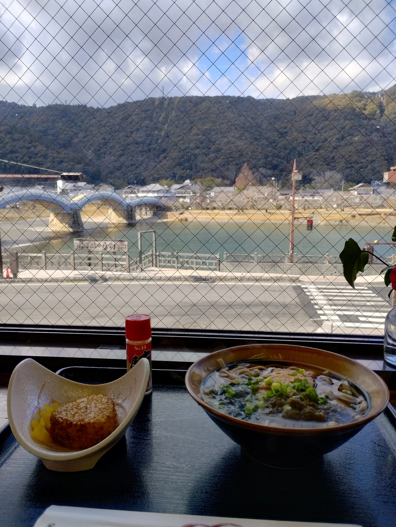 이와쿠니시 킨타이쿄 앞에서 우동.