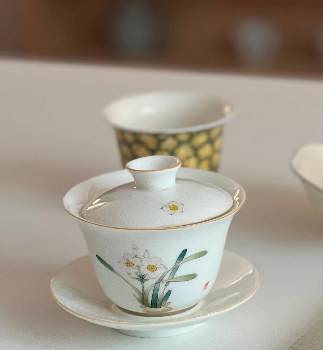 “그렇다기 보단, 이런 유약 바른 도자기 개완에 우리면 차가 가진 맛을 그대로 맛볼 수 있대. 사용하기도 편하고”