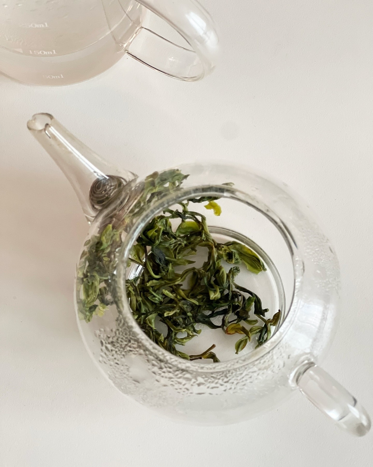 다하에 담아 놓았던 우전 찻잎을 다호 안에 넣는다.