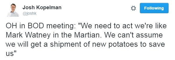“우리는 마션의 마크 와트니처럼 행동해야 합니다.