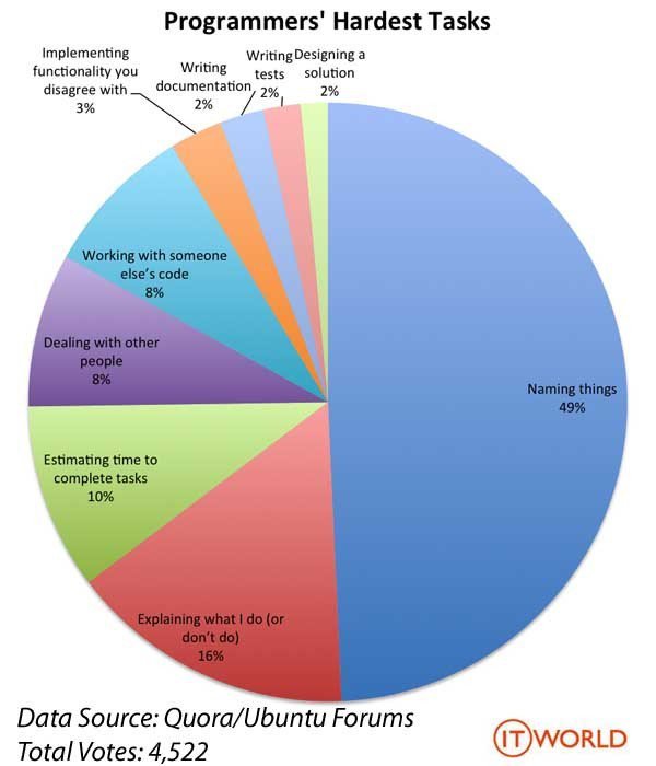 국내뿐만 아니라 해외에서도 네이밍에 대한 어려움은 똑같은 것 같은데요, 이런 밈이 있을 정도로 많은 프로그래머들이 골치 아파하는 부분인 것 같습니다.