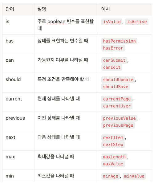 이러한 형용사 사용은 특히 boolean 타입의 변수에서 유용하며, 코드의 의미를 직관적으로 파악하게 도와줍니다. 또한 형용사를 포함한 이름은 조건문 작성 시에도 가독성을 높여줍니다. 예를 들어 if (isCompleted)라는 조건문은 해당 작업이 완료되었는지를 바로 알 수 있게 해 줍니다. 따라서 변수의 상태나 특성을 강조하고 싶을 때는 적절한 형용사를 사용하여 명확하고 읽기 쉬운 코드를 작성해 보세요.