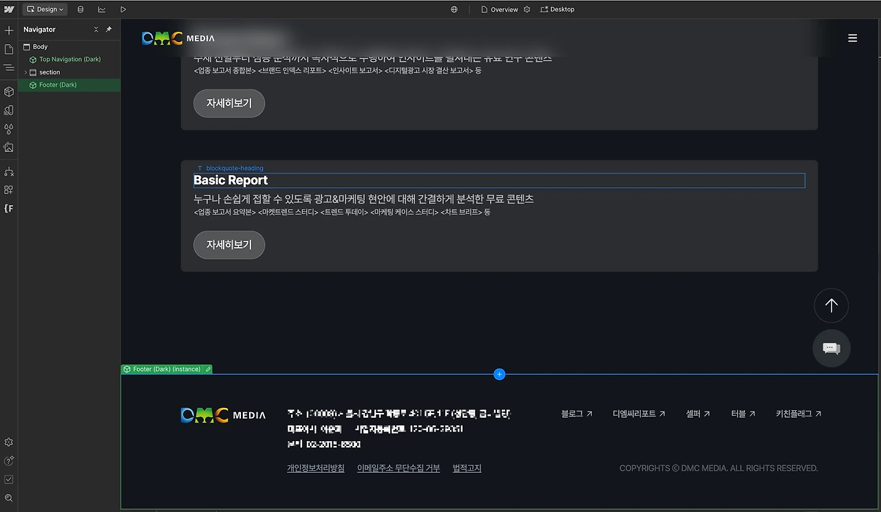 기존의 웹플로우의 컴포넌트는 텍스트 수정이나 이미지 수정은 지원하였지만, css 변형은 지원되지 않아서 위의 이미지와 같이 각각의 컴포넌트를 만들어야 했습니다.