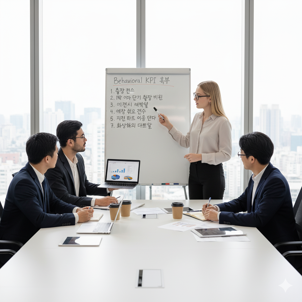 “각 Behavioral KPI에 절감 효과를 붙여봅시다. 출장 하루 줄이면 얼마가 절감되는지, 화상회의로 대체하면 얼마가 줄어드는지, 평균 단가를 낮추면 얼마인지. 이렇게 정량화하면 매월 업데이트할 수 있고, 부서장들은 자기 성과를 바로 비교할 수 있죠.”