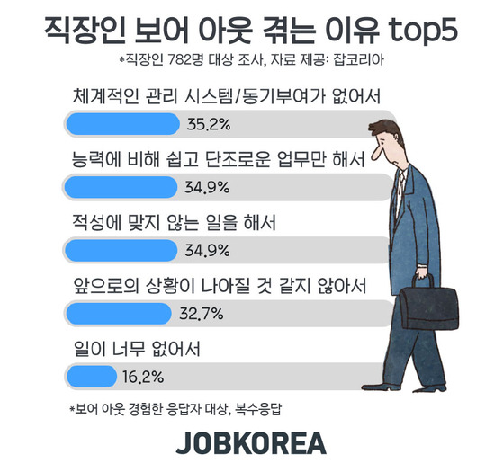 직장인들이 보어 아웃을 겪는 이유 Top 5가 있다. 난 이 중에서 대부분이 포함된다.