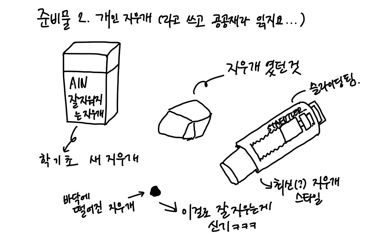 "너네 공부할 때 지우개 없으면 불편하지 않아?"