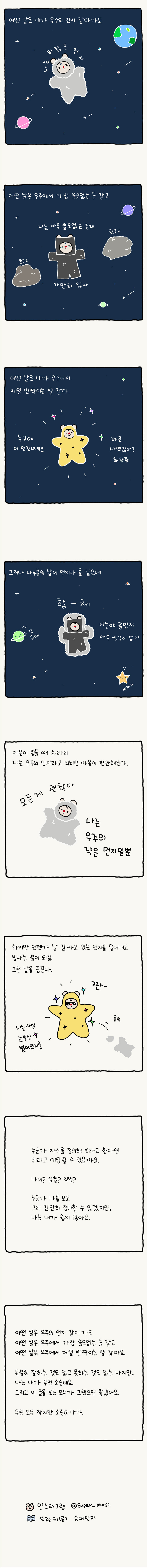 현재 백수, 취미는 집순이. 먼지같은 일상과 생각을 그립니다. 기왕이면 슈퍼먼지가 되고 싶은 우주의 먼지 한 톨