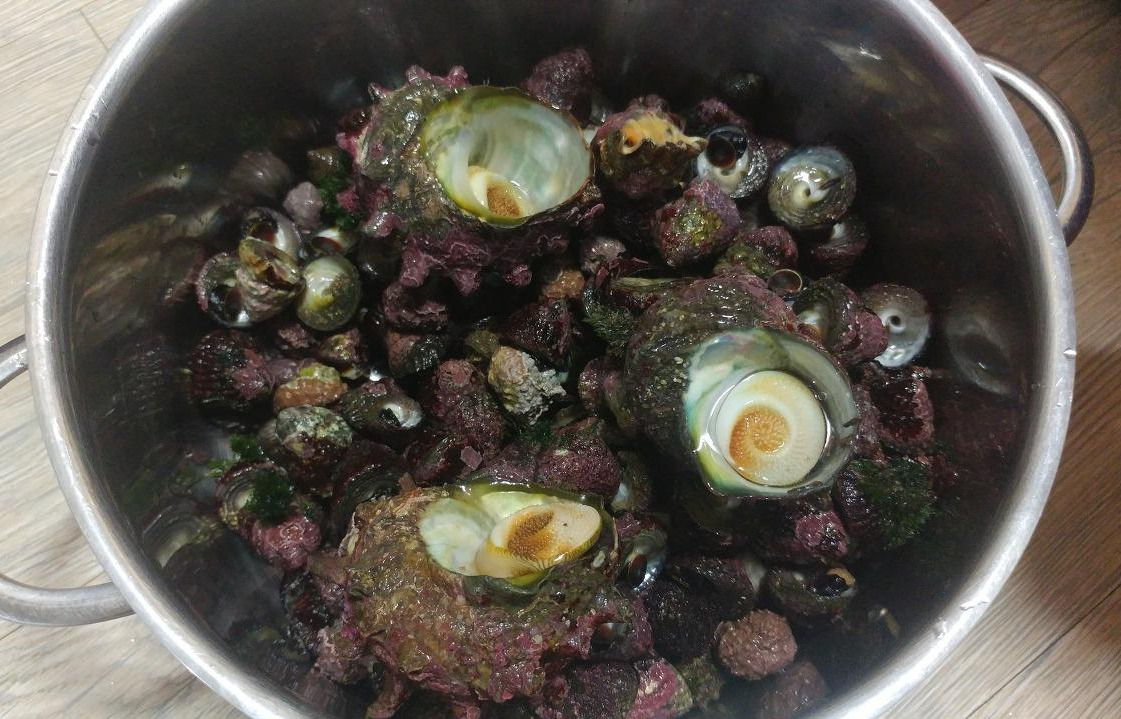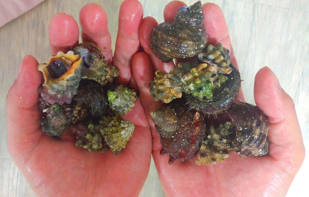 주말에 남편을 꾀어 그곳에 갔다. 하지만, 눈을 씻고 찾아봐도 그녀가 보여준 사이즈의 소라는 없었다. 보말조차도. 실망을 안고 돌아갔다. 하지만 포기할 수는 없다. 다시 한번 정확한 위치를 물어보니 지난번 그곳에서 더 안쪽으로 들어가야 눈에 띄지 않는 스팟이 나온다고 했다. 남편이 쉬는 날, 남편의 지인까지 동원해 그곳을 찾았다. 과연 언니의 말대로 굵은 씨알의 소라들이 물속 여기저기에 붙어 있었다.