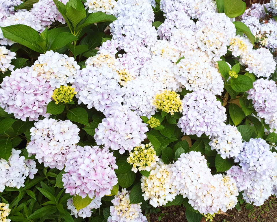 제주는 사계절 꽃이 있다. 6월의 테마는 수국이다. 가로수 대신 곳곳이 수국이다. 토양의 성질에 따라 보라와 빨강 사이의 다양한 스펙트럼으로 꽃이 핀다. 탐스럽기 그지없다.