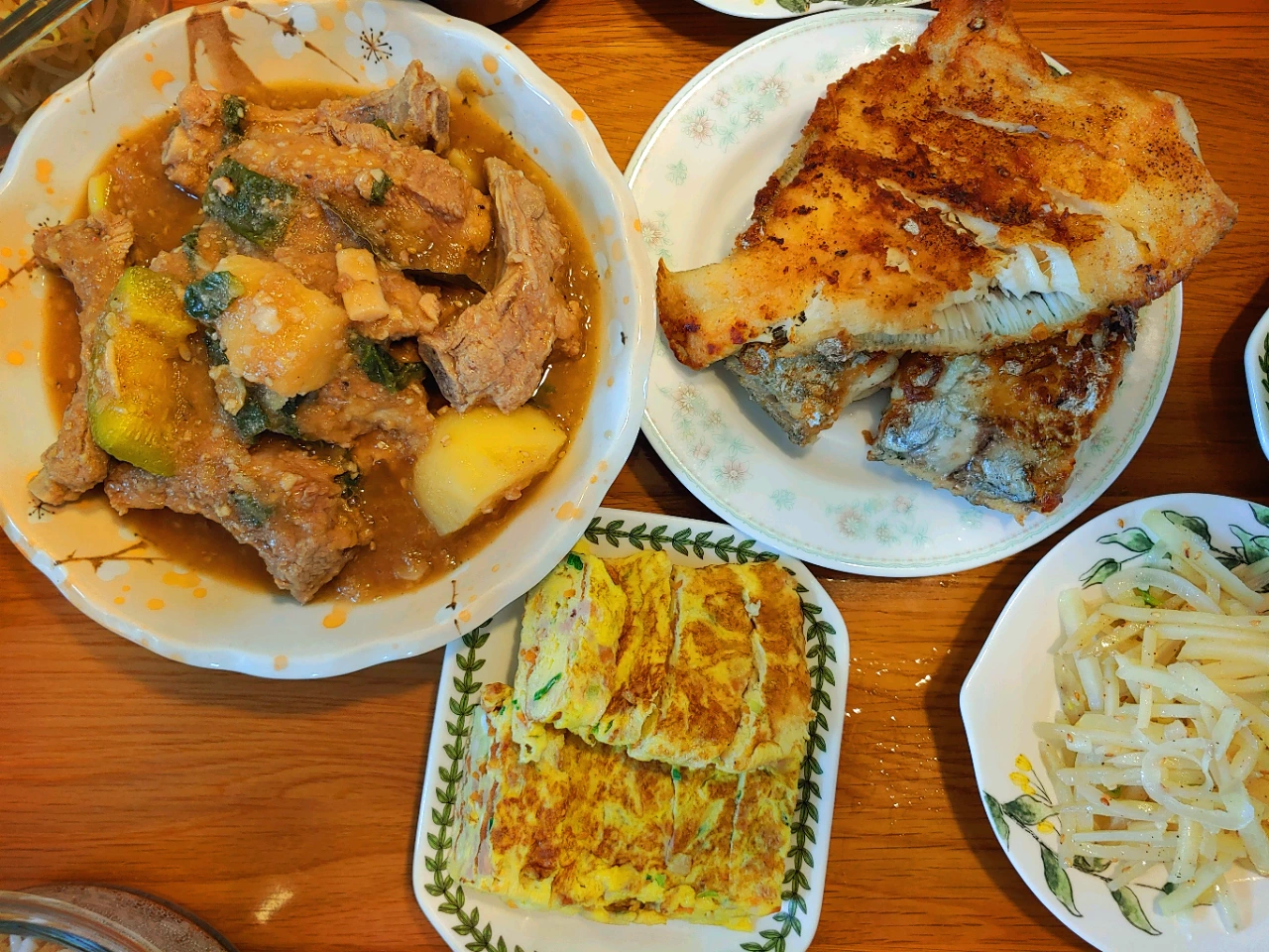 식탁 위에 올려놓는데 오늘의 첫 밥이라 그런지 냄새가 기가 막힌다. 사위 먹이시려고 등갈비찜까지 해오셨다. 입에 넣어보니 뼈가 쏙 발라내지며 보들보들한 살이 녹아든다.