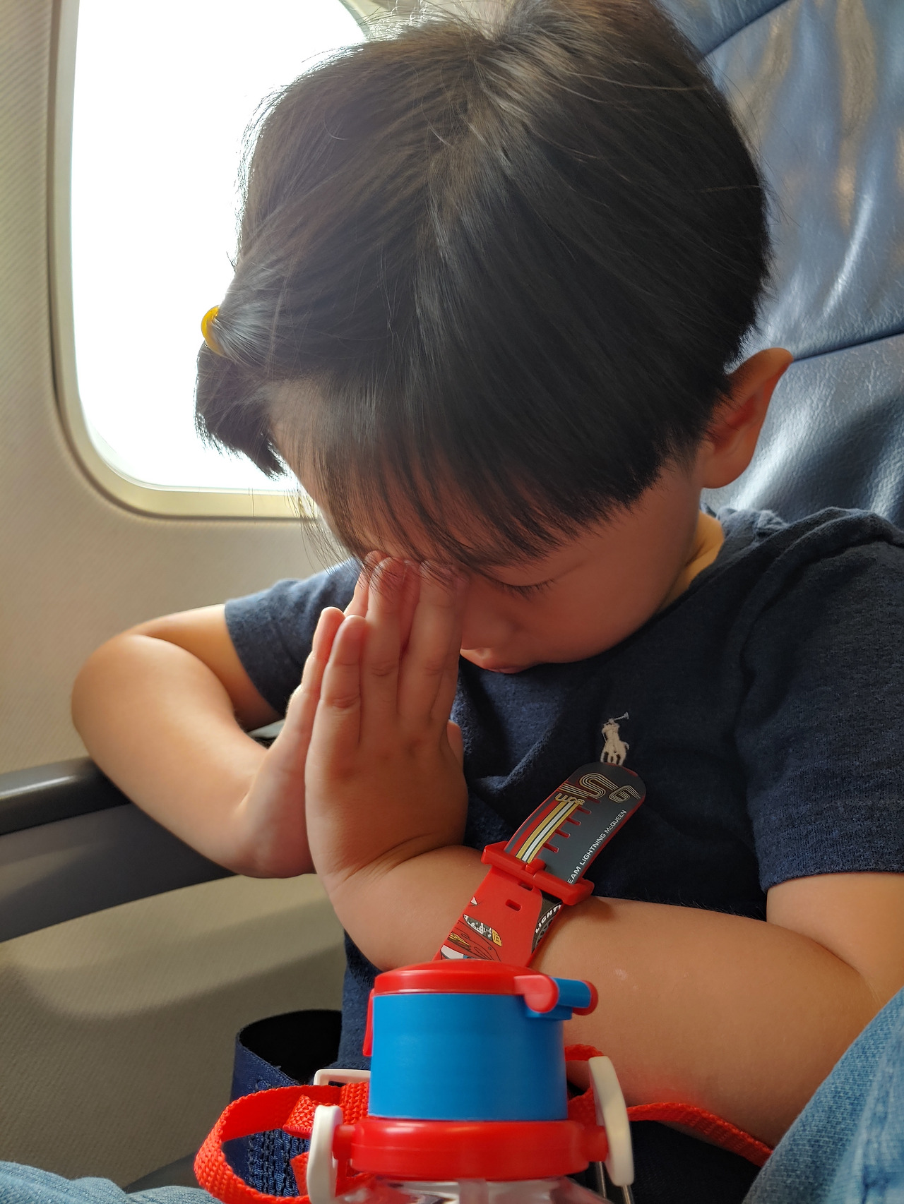 다행스럽게 우리 앞자리에도 연세가 지긋하신 분들이 앉아계신다. 조금은 마음이 놓인다. 재잘거리며 과자를 먹어도 눈치를 주는 이가 없다. 가끔씩 스스로 통제 안 되는 고성이 나와 입을 틀어막기는 했지만. 지난 비행에 비하면 양호하다. 그럼에도 피곤하셨을 앞좌석 어르신들에게 "많이 시끄러우셨지요"라고 여쭈니, 괜찮았다는 대답을 들어 마음도 편하다.