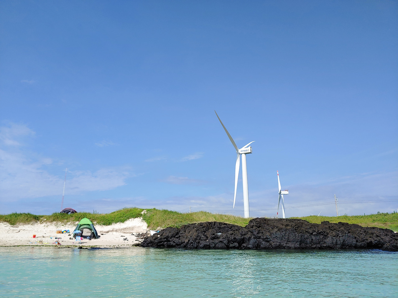 바다수영. 이름만 듣기에는, 그리고 사진으로 보기에는 근사하죠. 물론 북적거리는 해운대 바다와 비교하면 한산하고 바다의 모습도 다양해요. 하지만, 바닷물이 닿은 몸은 태양빛에서 더욱 잘 그을리고 달아올라요. 이글거림이 피부에서 느껴진다고나 할까요. 뿐만 아니라 수영 후 바닷물의 끈적거림도 정말 찝찝하죠. 이런 사람들에게 제주에서의 피서는 정말 아닌 듯해요.