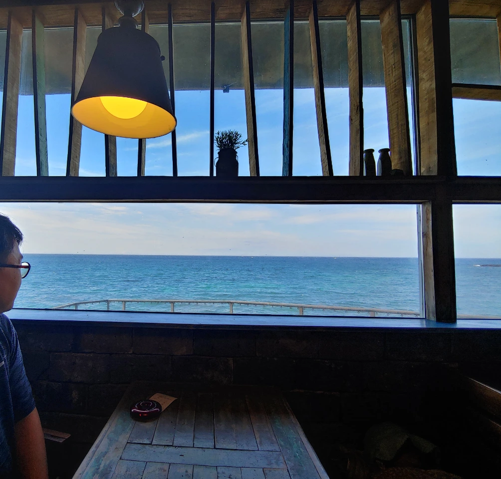 실은 요 며칠간 받은 스트레스를 바다 풍경을 더한 커피 한잔으로 위로받으려고 했어요. 동생네 가족이 와서 지낸 5일 동안, 북적거리며 재미있기는 했지만, 아무래도 손님이다 보니 좋은 것 먹여주고 좋은 것 보여주고 싶은 마음에 꽤 신경을 쓰고 지낸 며칠입니다. 하지만, 내 뜻과는 달리 어린 조카들과 좁은 집에서 함께 지내는 일은 쉽지는 않았어요. 무엇보다 무더운 날씨에 바깥활동이 제약적이다 보니 괜찮을 곳을 찾는 일도 여간 고민스러운 것이 아니었고요. 거기에 울음 대장인 조카의 칭얼거림에 정신적인 피로감이 더해졌어요. 오늘 아침 공항에 바래다주고 죽은 듯이 2시간을 잤네요. 북적거림보다는 고요함에서 더 편안해지는 제 자신임을 다시 한번 깨달아요.