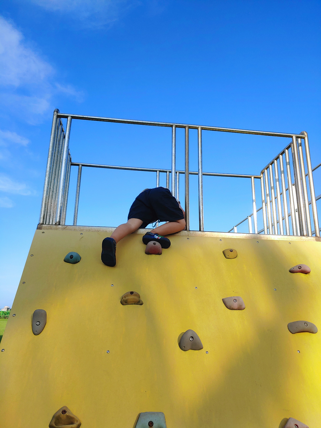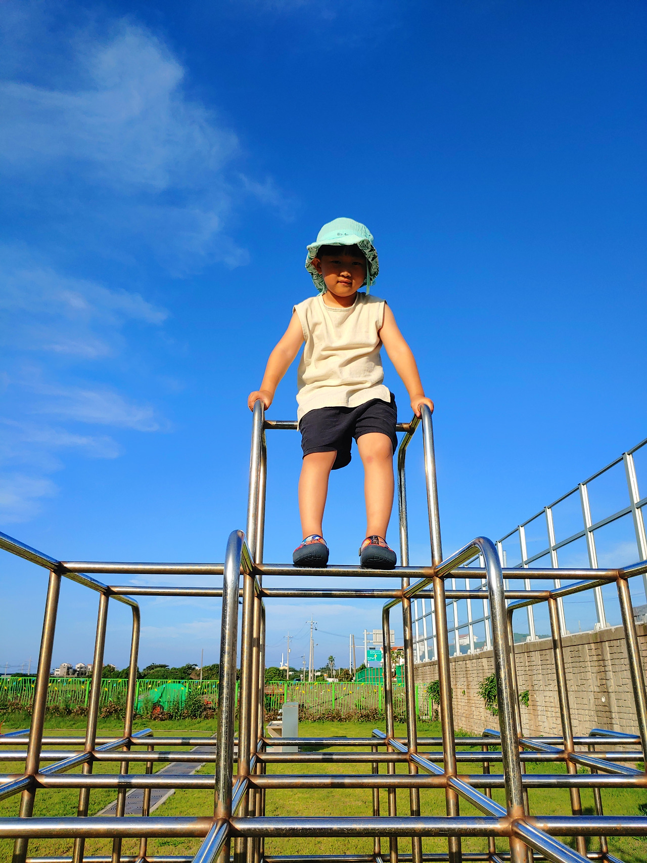어? 그런데 제가 알던 무지개학교는 온데간데없고 현대식으로 깨끗하게 지어진 학교만 있네요. 그 사이 학교 전체를 재건축한 모양이에요. 아쉬움이 남지만초등학교에는 놀이터가 있잖아요. 잠깐만 놀다가기로 합니다. 하지만 잠깐만, 은 가능할 리가 없지요. 놀이터를 전세내고 놀아봅니다. 구름사다리, 정글짐, 사다리 넘기 모두 좋아했던 기구인데 지금은 오히려 무섭네요. 맨꼭대기에서 손을 놓고 편안히 앉아 하늘을 이고 있던 기억은 꿈만 같아요. 하지만, 저를 대신하여 저의 2세가 자유롭게 놉니다. 묘한 기분에 휩싸입니다. 하늘은 푸르고 드높고요.