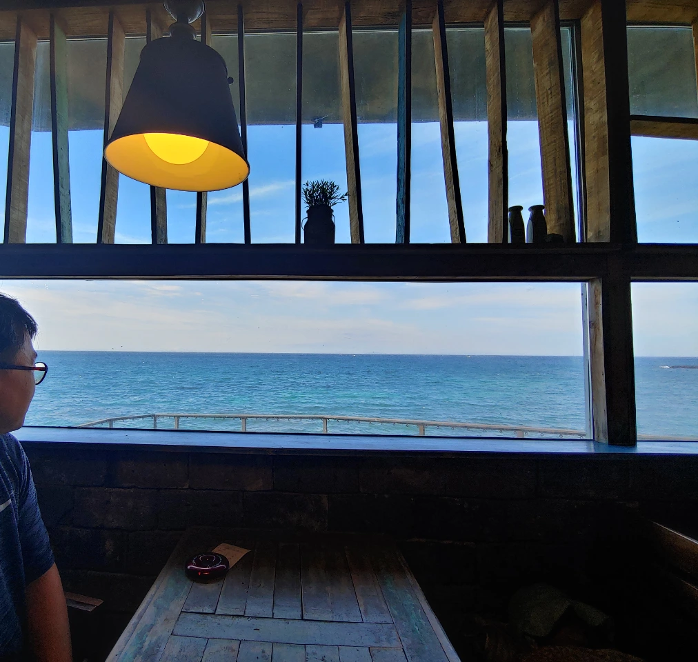 고소한 맛과 새콤한 맛의 아메리카노를 각각 주문해요. 그리고 말없이 바다를 내다보아요. 풍경 값까지 더해진 커피값은 꽤 비싼 편이었지만, 리필이 가능하다는 것을 아는 순간 가성비 갑인 카페가 되네요. 거기에 인생 샷까지 찍을 수 있는 하늘 옥상도 있거든요. 좋은 풍경은 슬픔을 잊게 합니다. 비록 잠시일지라도.