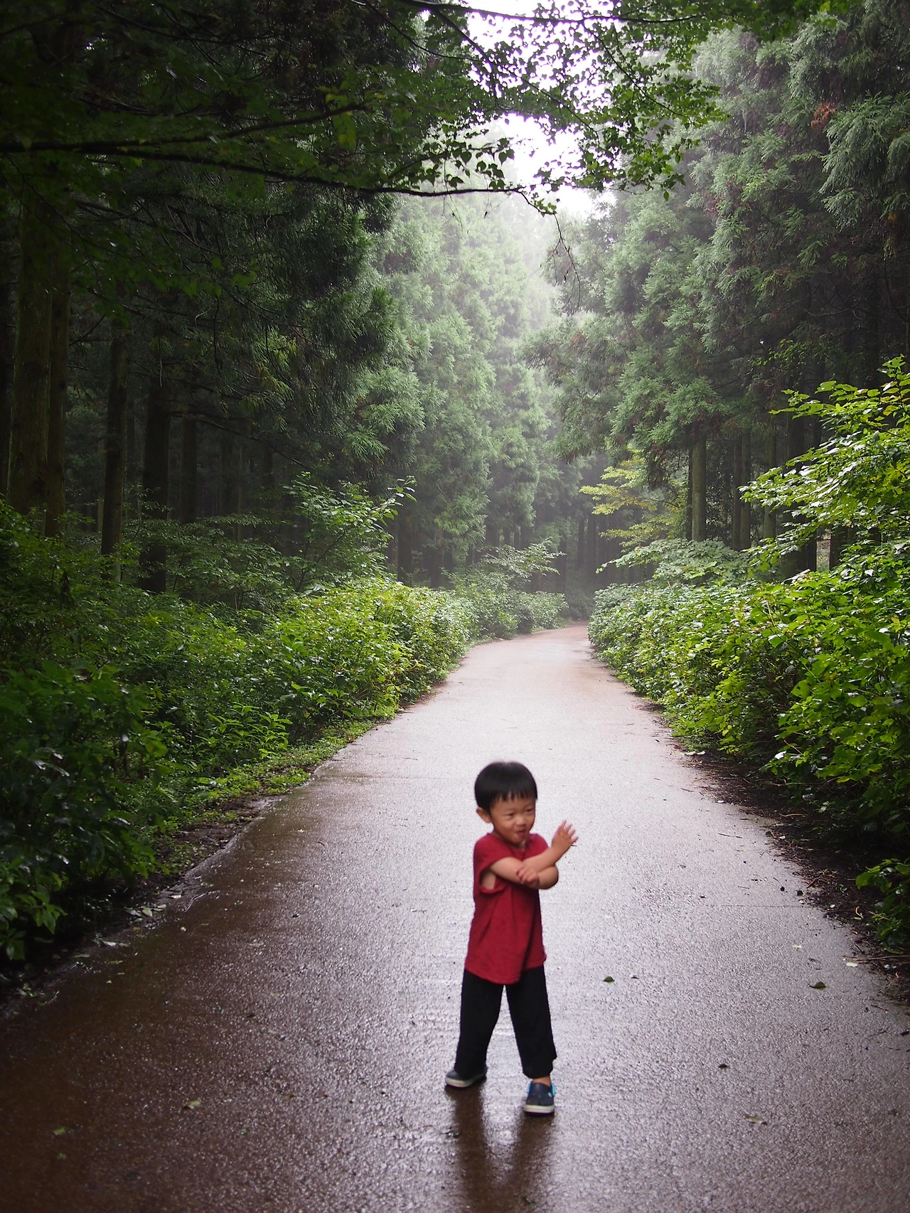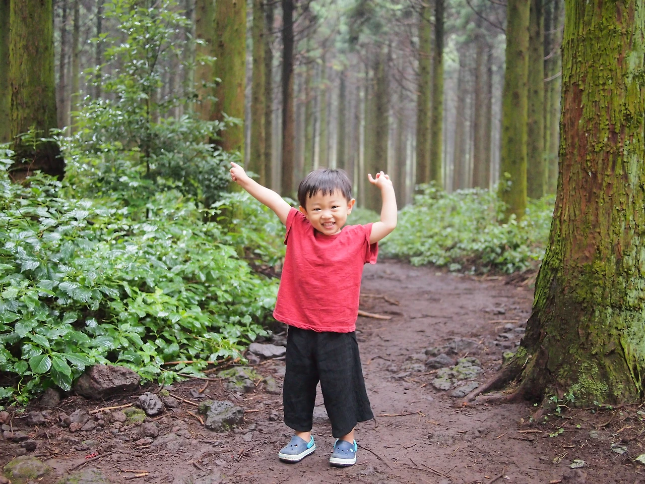 이번엔 숨바꼭질을 하자며 대뜸 눈을 감는다. 숨은 엄마의 뒤꼭지를 찾아내고는 '까르르' 웃는 아이의 웃음소리가, 비로 묵직해진 사려니 숲길을 가붓하게 만든다.