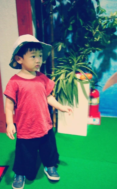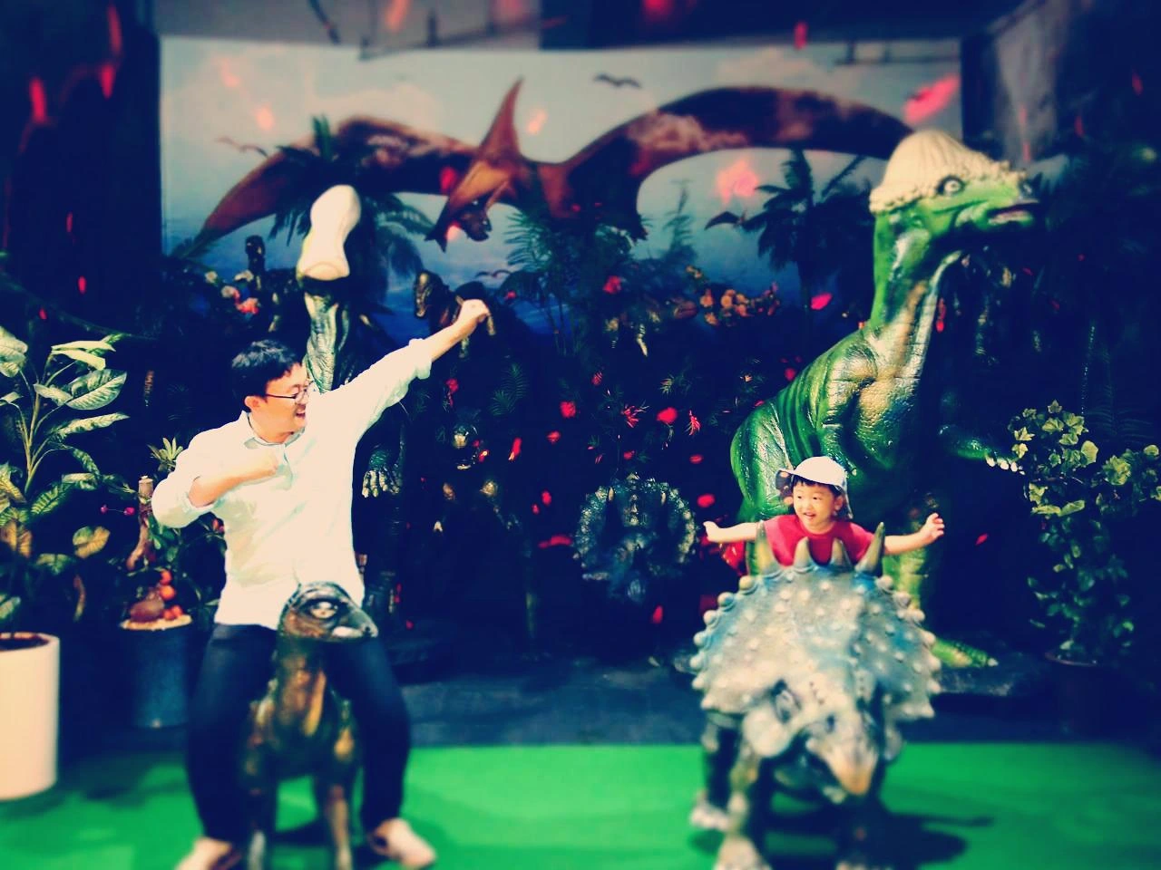 하고 달려가는데, 커다란 공룡이 '쿠와앙'소리를 내며 움직인다. 기겁한 아이는 무섭다며 뒤돌아서 안긴다. 하지만 할아버지가 여기 공룡 타보자며 아이를 부르니, 호기심에 이내 다시 슬쩍 가본다.