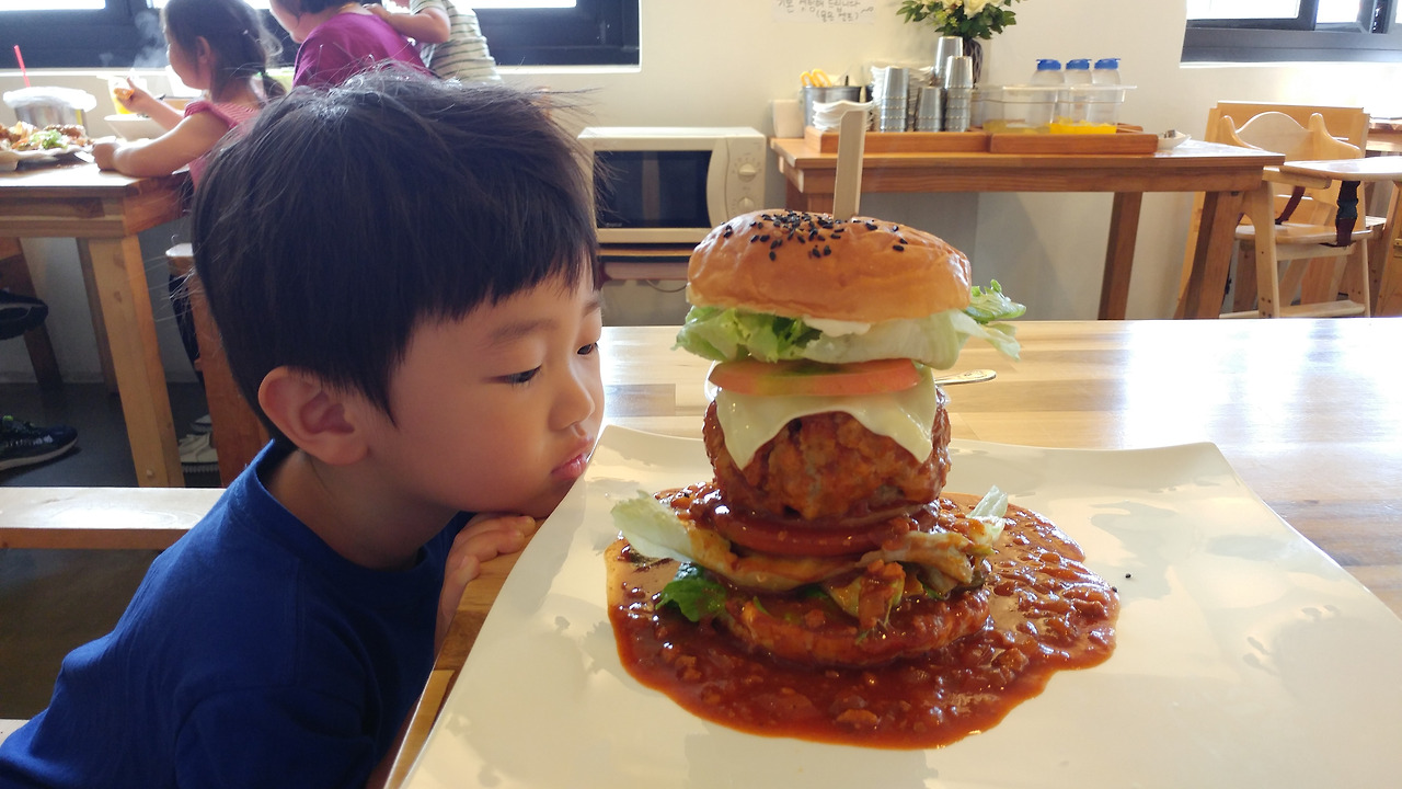 애월해안도로를 신나게 달리다 보면 나오는데, 주차난에 조금 더 마당이 널찍한 옆옆으로 이사를 했다. 1인용 목수버거를 주문했는데, 소스가 맵다며 따로 담아주신다 했다. 그런 친절함에 감사할 무렵, 소스가 덮인 버거가 우리 앞에 등장했다. 따로 주신다더니 소스는 따로 있나 보다고 생각하며 한 입 베어 무는데 어른 입에도 매콤하다. 그래서 확인했더니 대뜸 누구한테 주문했는지부터 묻는다. 이럴 때는 주문의 확인과 사과가 우선이다. 아무튼 상황을 보니 주문 내용이 주방에 전달이 안된 모양이다. 아이만 아니면 그냥 먹었을 텐데 같이 먹어야 하니 어쩔 수 없다.