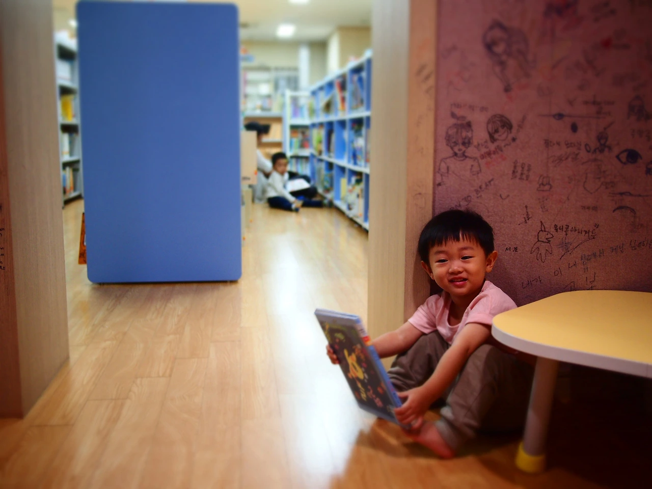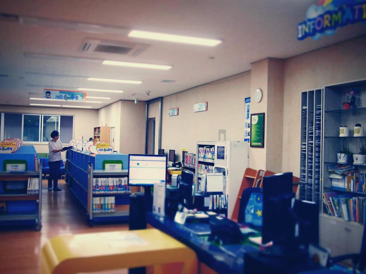 주변에 소나무 삼림욕장이 있다더니 그 푸르름은 비에 젖었을 때 더 빛을 발하는 듯했다. 연못도 있고, 간단한 식사가 가능한 구내식당도 있었다. 아기띠로 아이를 안고 어린이 자료실로 향했다. 유아실은 따로 없고, 수유실이 있었는데 거기를 사용해도 된다는 허락을 받고 아이를 뉘였다.
