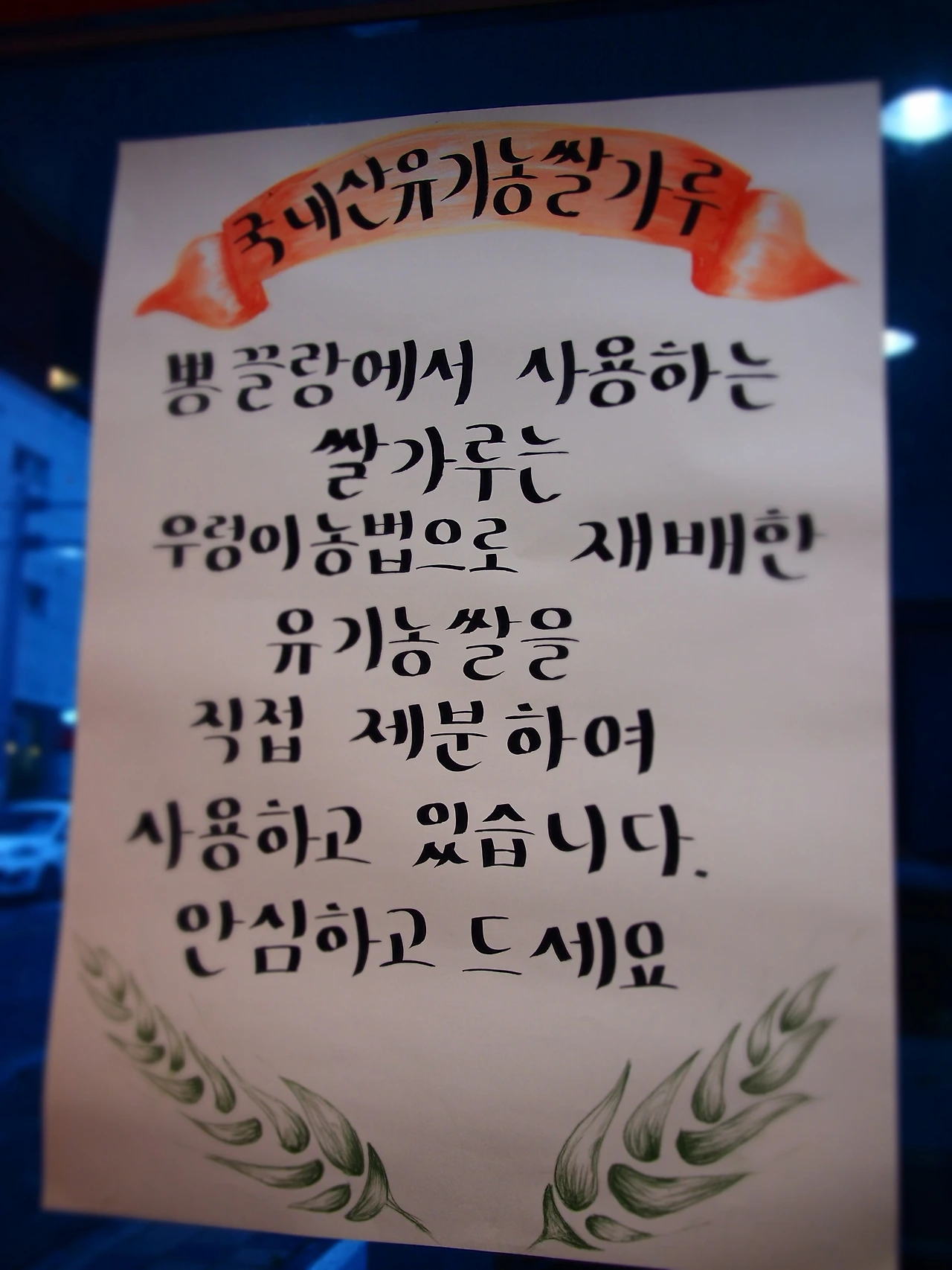 많은 소규모 제과점이 예약주문제로 운영을 하고 있는데 다행히 여기는 예약주문과 함께 홀에서도 그날그날 만든 케이크를 판매하고 있었다. 우렁이농법으로 재배한 유기농 쌀을 직접 제분한 쌀가루를 사용한다고 쓰여 있었다.